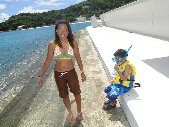 父島に第一歩! 清水はまだ夏休みではないので学校です。「さあ思い切ってあそぼう!」