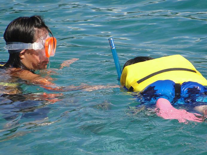 ごはんを食べた後 まずシュノーケリング レッスン さあ 龍馬 がんばろう